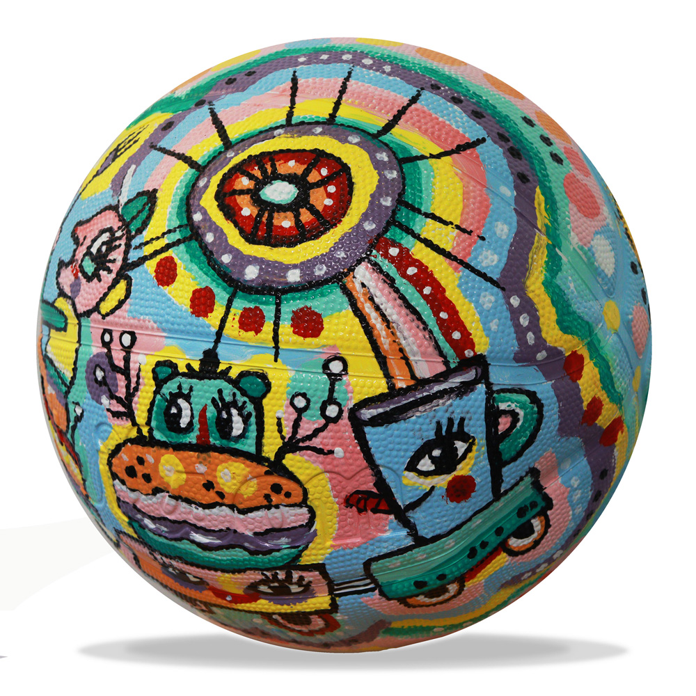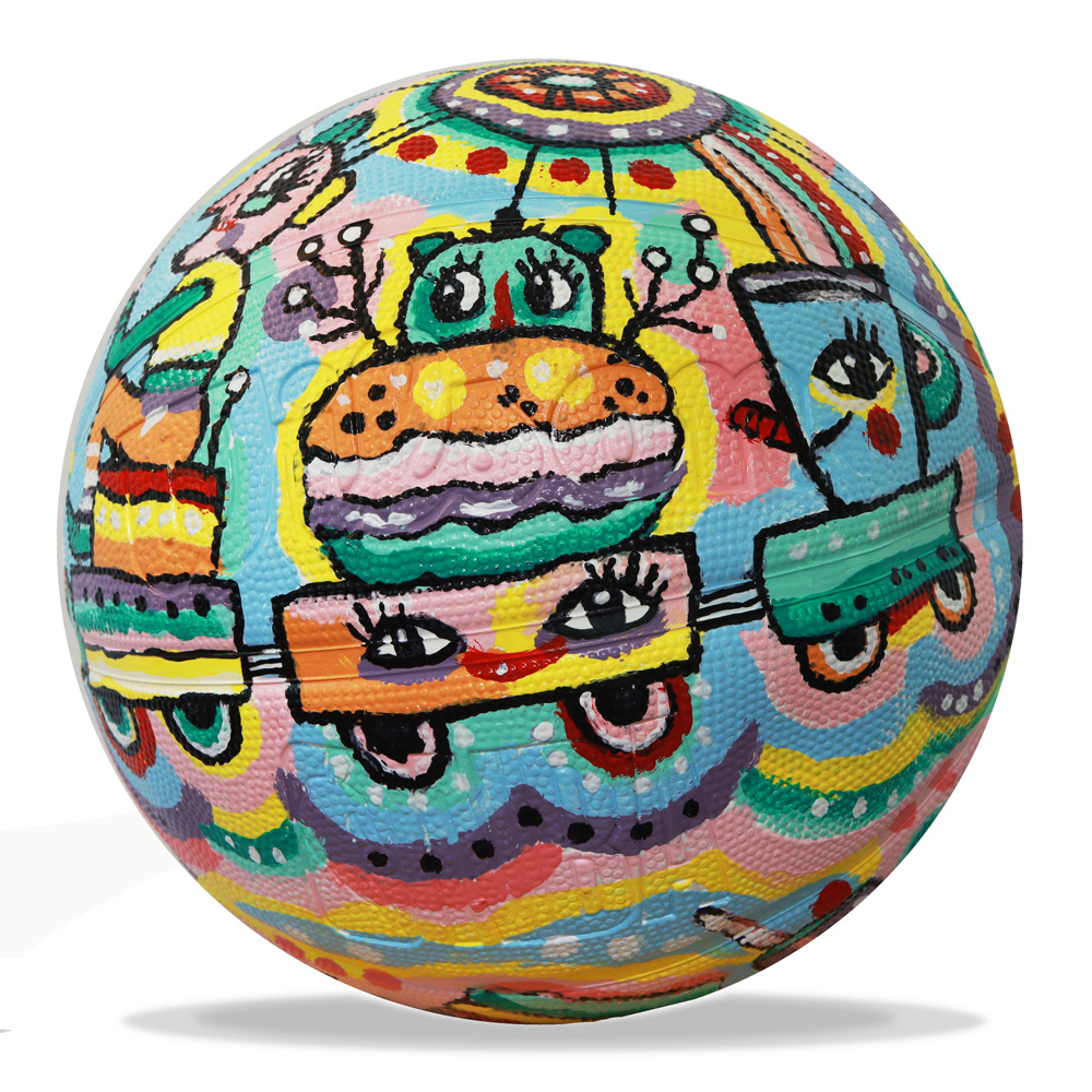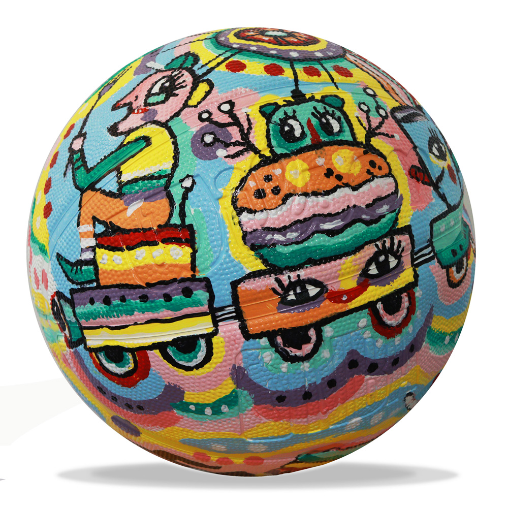 I have painted on a tree. I have painted on a bus. I have painted on many things. This week I painted on a basketball. I was asked to make some art on a basketball for State Farm Arena and the Atlanta Hawks. My art is inspired by Meals on Wheels and their relationship with State Farm.