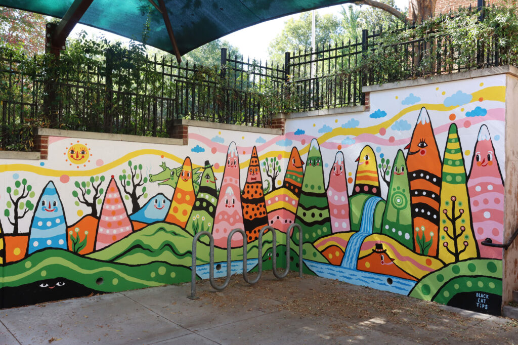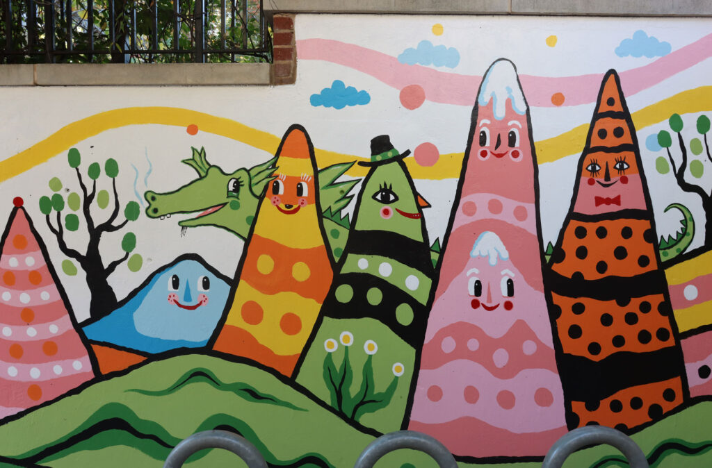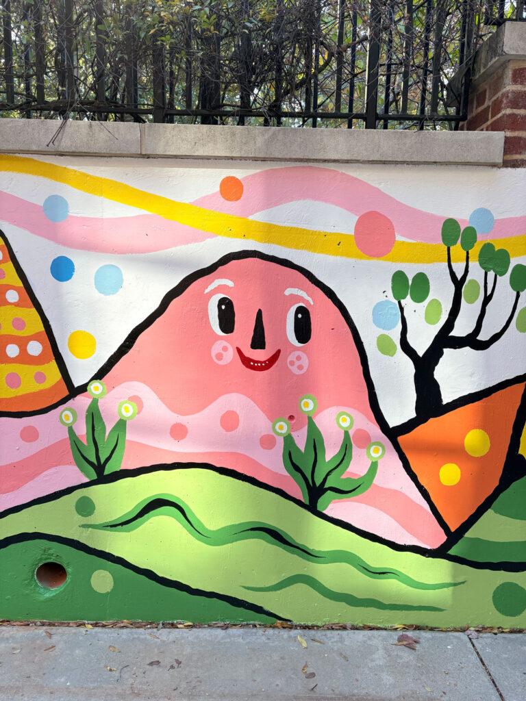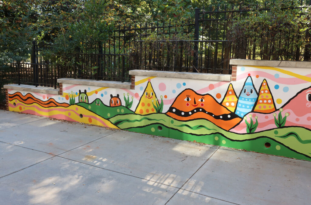 I painted a new mural for Springdale Park Elementary in Atlanta — aka SPARK. It is 63′ long on a concrete wall. The wall was old and gray and now it is full of color and life and is very inviting for young and old. I really enjoyed my time at the school. I got to work with several classes over a few days.