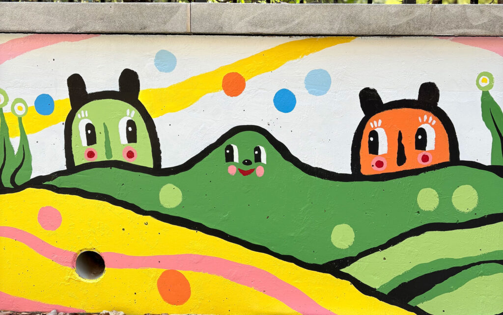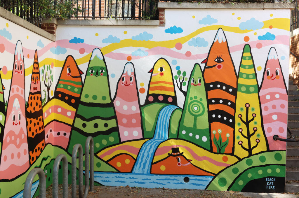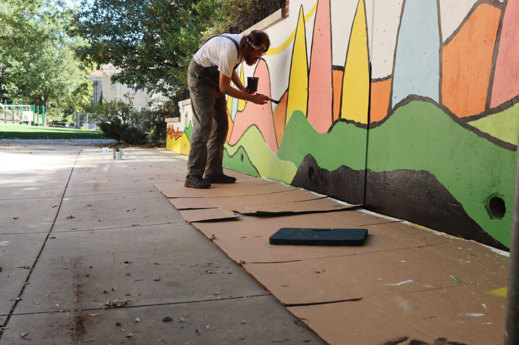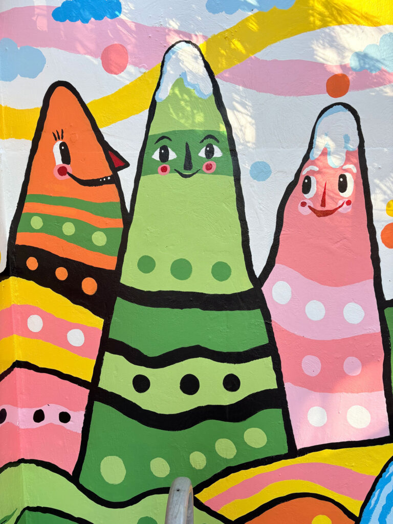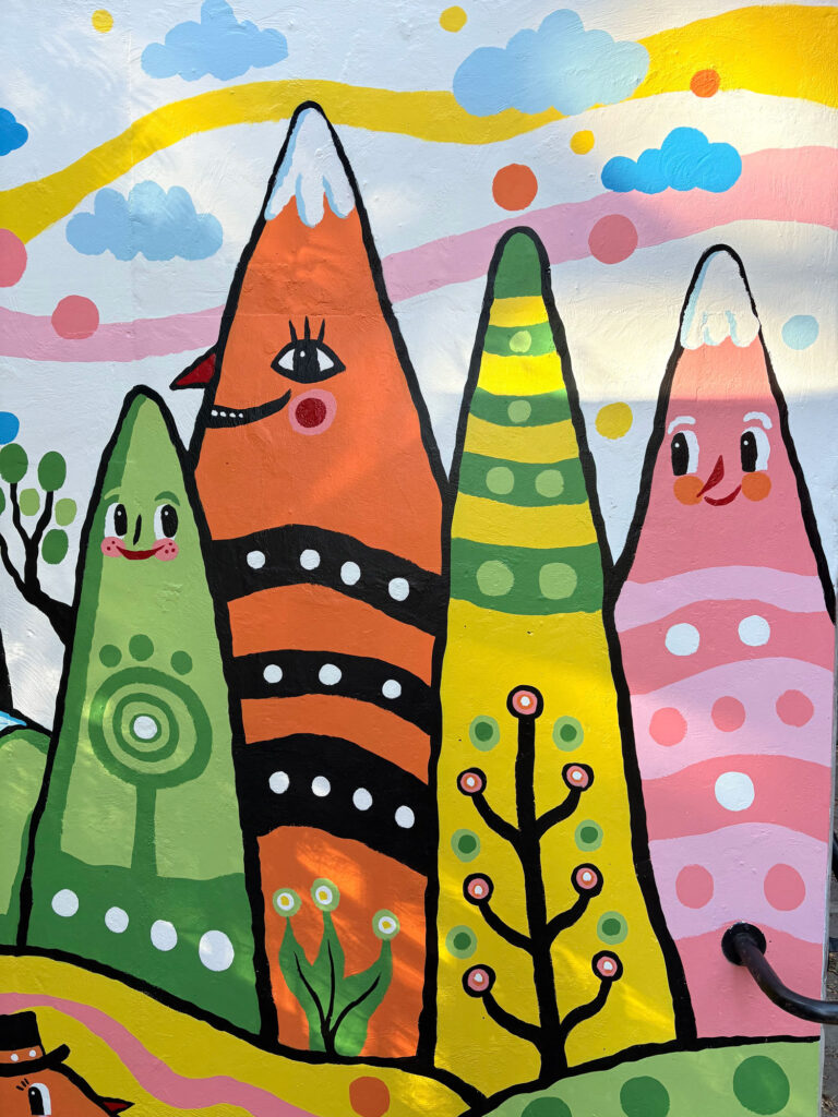 I painted a new mural for Springdale Park Elementary in Atlanta — aka SPARK. It is 63′ long on a concrete wall. The wall was old and gray and now it is full of color and life and is very inviting for young and old. I really enjoyed my time at the school. I got to work with several classes over a few days.