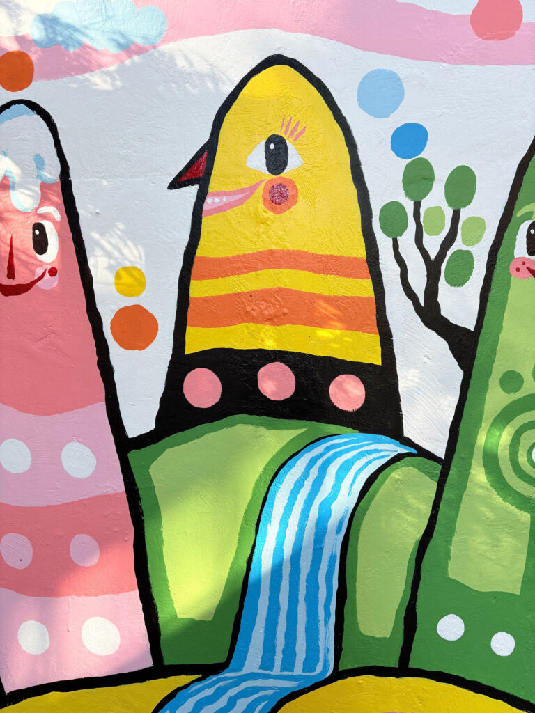 It is very exciting to see how children and adults react to my work. I love all the children’s questions. One child asked me if I slept at the school. Some ask me how long it takes me to paint. A lot asked if they could help. One girl told me she had 4 cats at home.