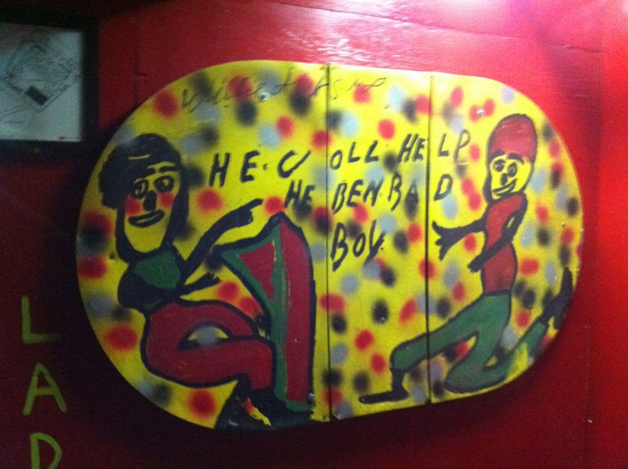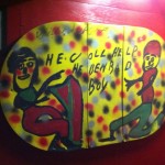 I went to the Tabernacle this week. It is a old church turned into a concert venue in downtown Atlanta. They have a lot of folk art in there. The times I had been before it was too dark and crowded to notice. This visit was in the day so I coud see clearly. I had just talked last week about how I would love to see and find some Willie Jinks paintings. I was very surprised to find this collection. Previously, I only had ever seen his work online. I took these pictures of some of the ones the Tabernacle has currently displayed.