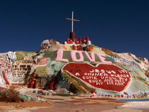 Salvation Mountain really appeals to me. I agree with the message. I love the art. I like the old tan desert man’s spirit and his dedication to his message. He is a little crazy and very energetic. He is not typical. He is living his passion. Knight is telling his story and communicating with people around the world through his art and his great attitude. People admire these sorts of things. People are attracted to a little bit of crazy.