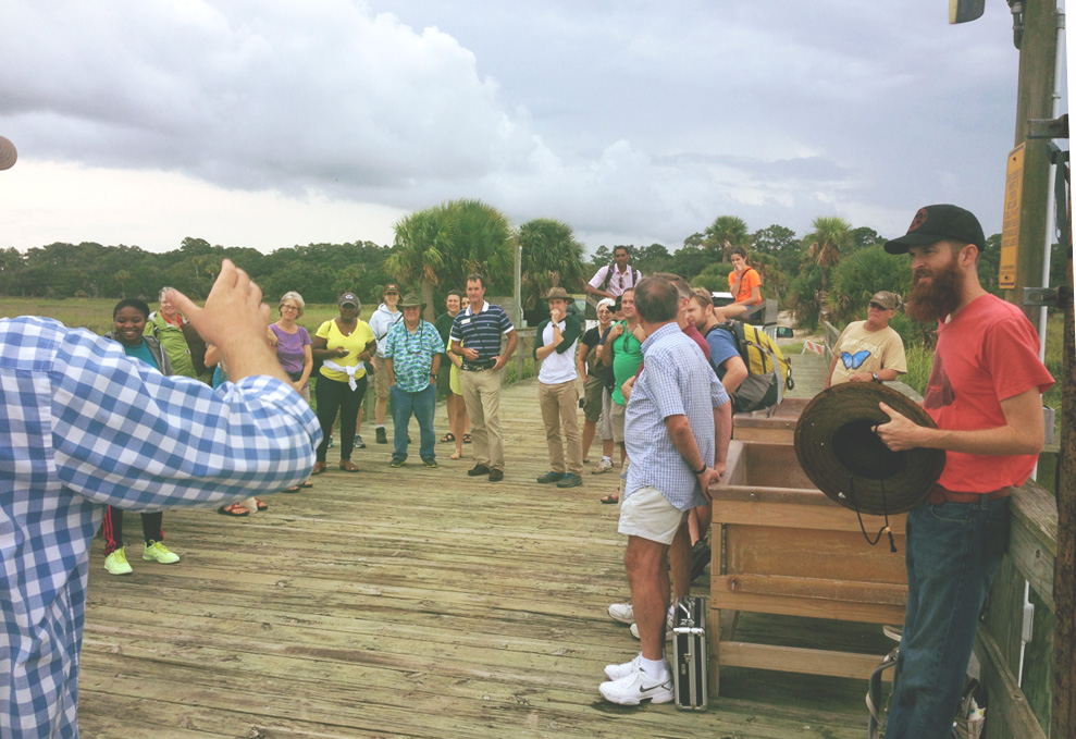 The Georgia Conservancy took care of us—fine eating and great conversation with a interesting mix of people. Two days and we were friends with campfires and low country boil to share. The team spent half a day of work in between adventures. We assisted the Ossabaw Island Foundation doing some cleaning and chores around the few buildings on the island. The work was light and fun with happy people. A storm spun off the coast and gave us wind and entertaining sky. The first night the wind blew and we watched as strange balls of glowing lightning in the distance flashed.