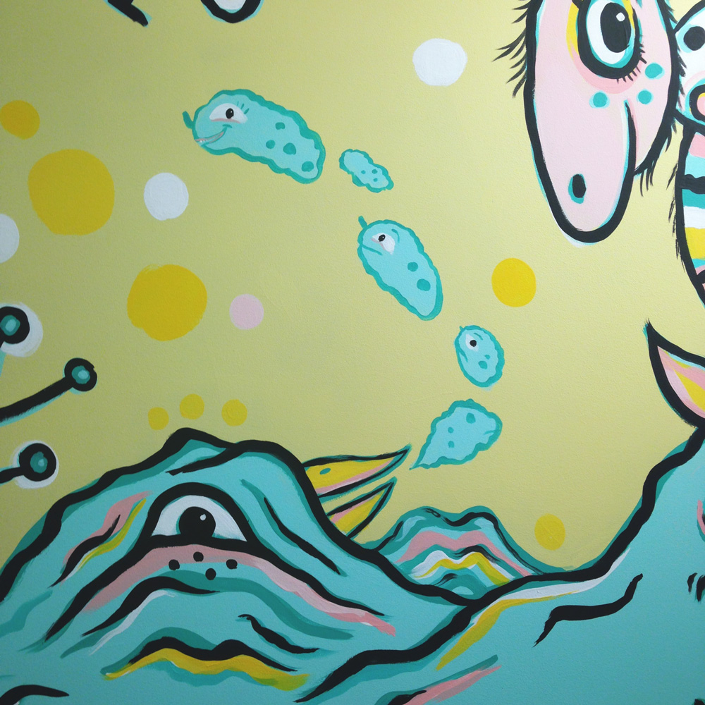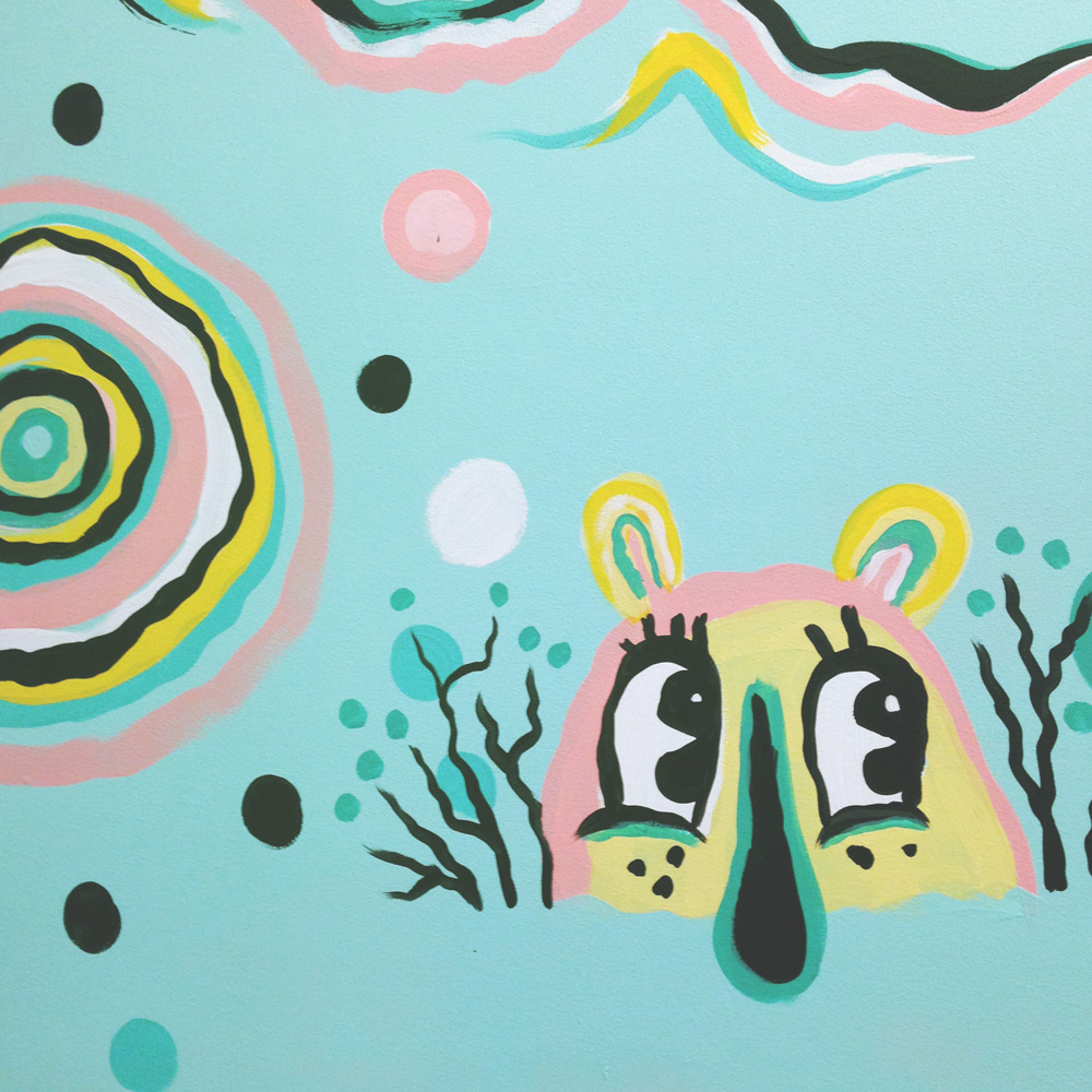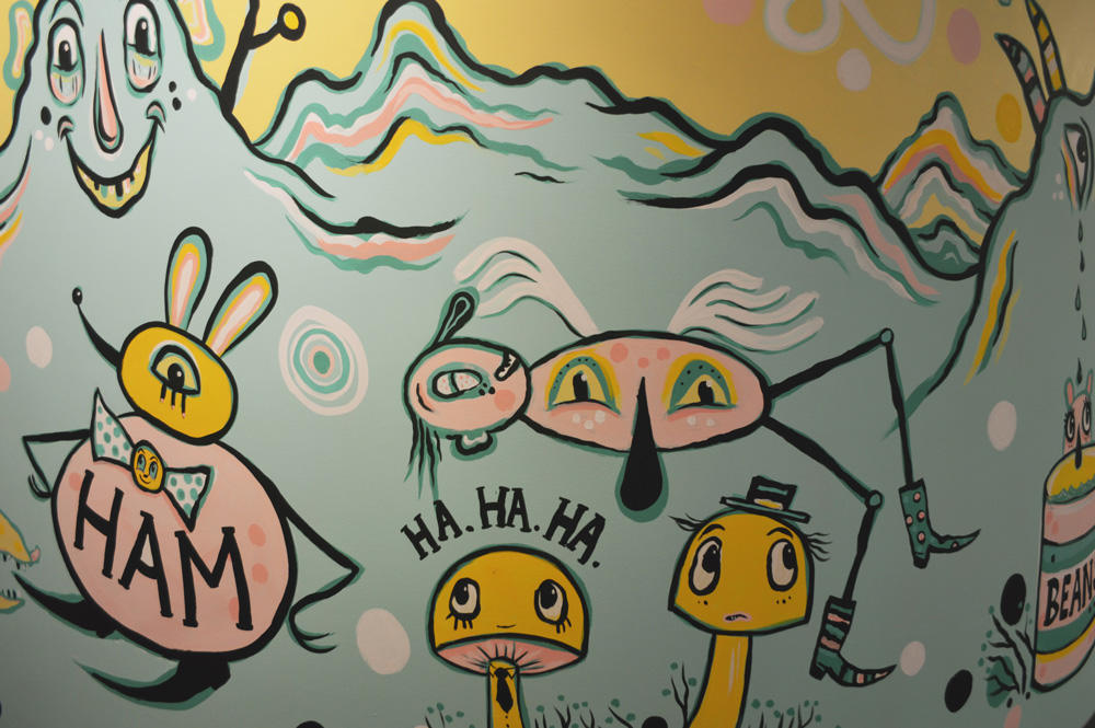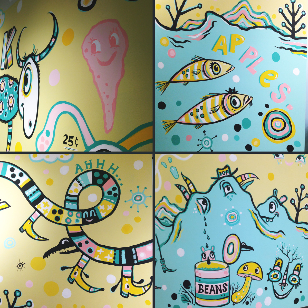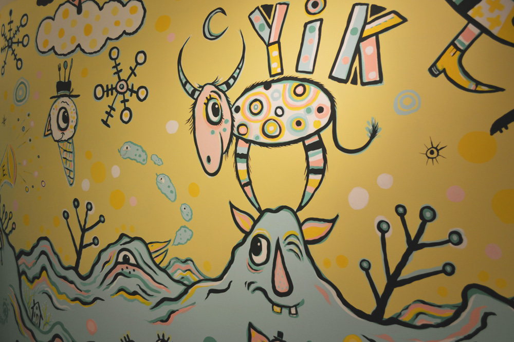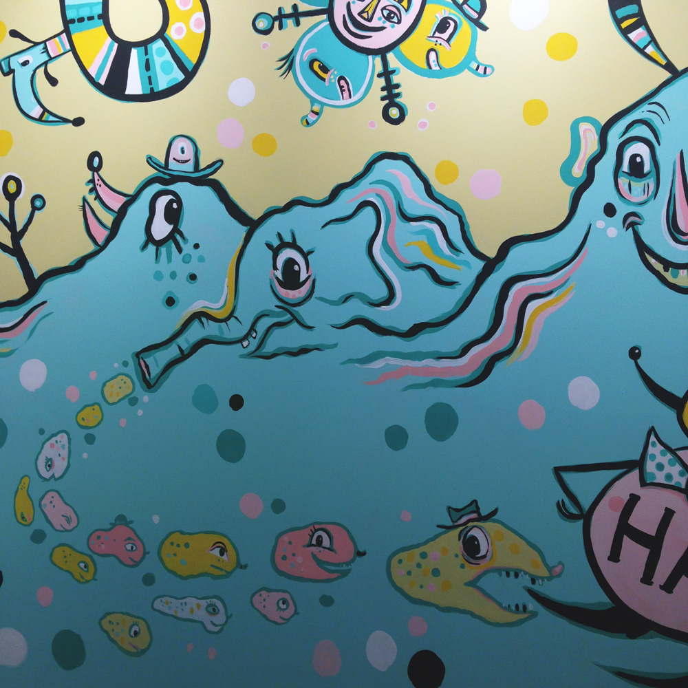 I just wrapped up a mural for the Yik Yak Headquarters in Buckhead, Atlanta, Georgia. I spent a couple weeks driving everyday with the business folks to a big building in the city, riding up the elevators and taking my brushes with me to a fancy new office. I made some friends up there at Yik Yak. I am glad they contacted me and said, “Come on over here Boy and bring your paints!“