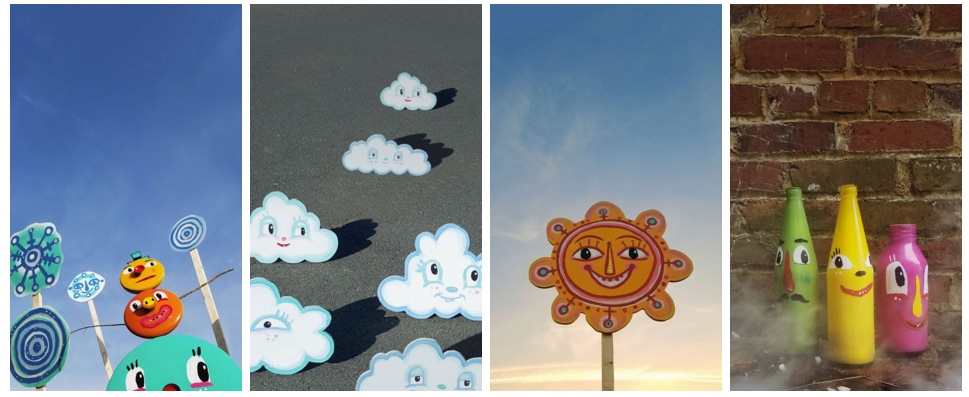 They wanted to show some BlackCatTips street folk art in a new and fun way. So we rode around and took a bunch of pictures of weather and art in interesting ways — to show the feel of weather and to hopefully make you smile.