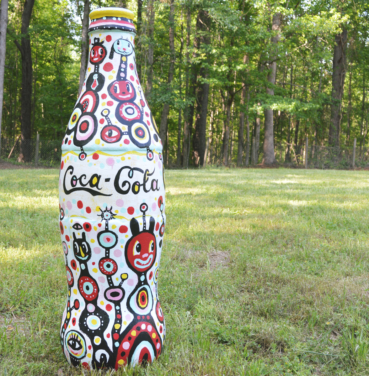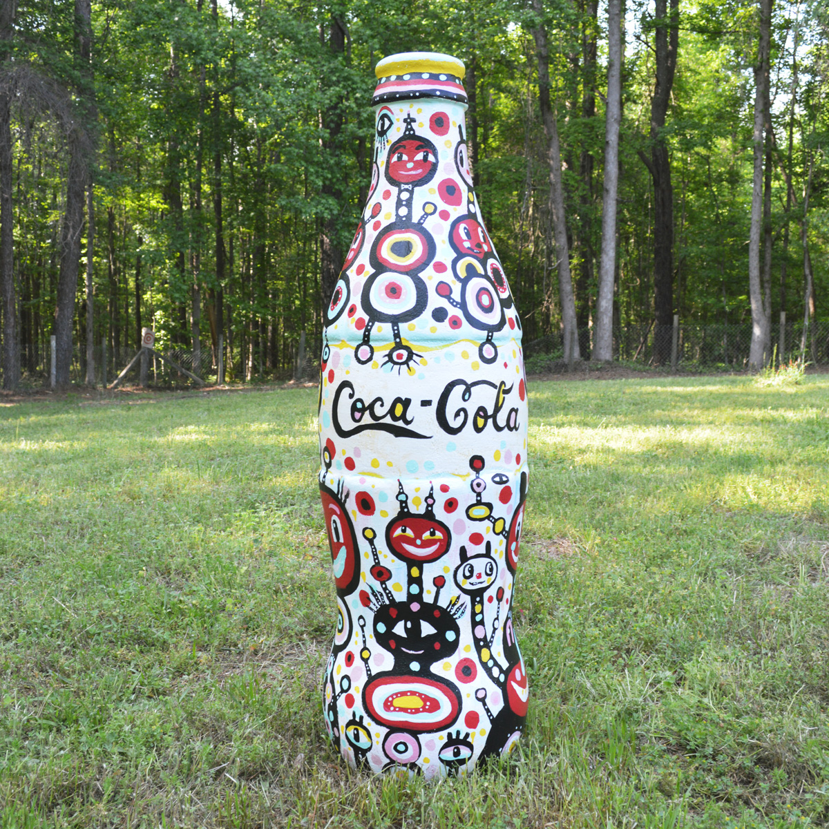 I stared at the plain white 4 foot tall Coca-Cola bottle I had picked up on a late winter morning from the Museum’s offices in downtown Atlanta. I stared at it a long time — many days of staring turned into weeks. I felt like I should make something monumental if it was to be on display for over 1 million visitors a year. I felt like I should do something worthwhile if it was to be on display mere feet away from art by Finster, Penley and Sundblom.